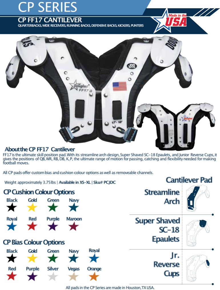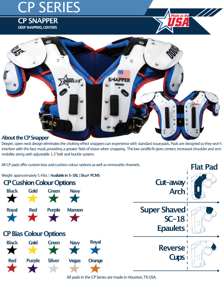 All DOUGLAS PADS pricing in $USD | Shoulder Pad Pricing Includes Shipping & Is For 1 (ONE) Item | Accessory Pricing Does Not Include Shipping | *Local duty/taxes/fees are the recipients responsibility |