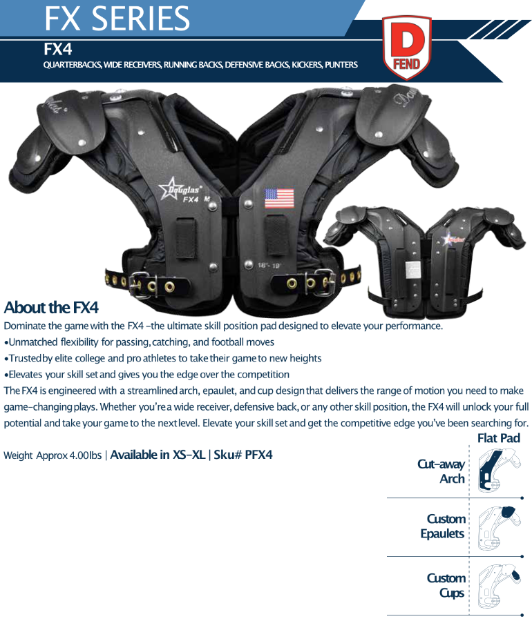 All DOUGLAS PADS pricing in $USD | Shoulder Pad Pricing Includes Shipping & Is For 1 (ONE) Item | Accessory Pricing Does Not Include Shipping | *Local duty/taxes/fees are the recipients responsibility |