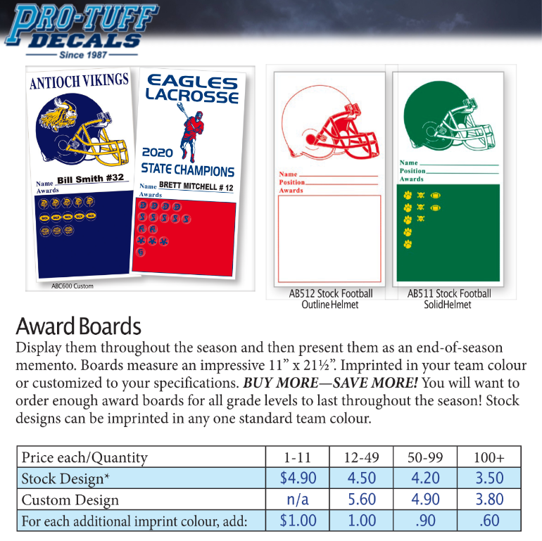 Choose From One Of The Stock Designs Or Have Us Design Custom Award Decals For You.