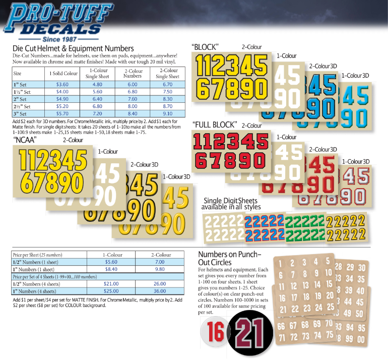 PRO-TUFF DECALS - NUMBERS