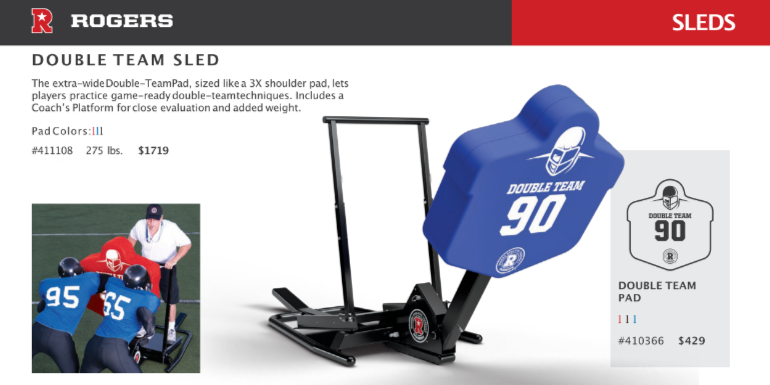 The extra-wide Double-Team Pad, sized like a 3X shoulder pad, lets players practice game ready double team techniques. Includes a Coach's Platform for close evaluation and added weight.